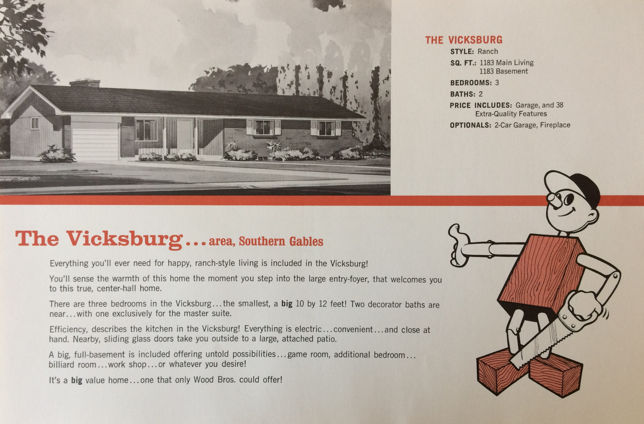 Wood Bros brochure (10) Published July 14, 2020 at 2560 × 1687 in Wood Bros. Homes ← Previous Next → Description of “The Vicksburg” model in the Wood Brothers brochure